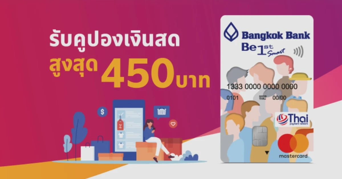รับคูปองเงินสดสูงสุด 450 บาท เมื่อชำระค่าสินค้า/บริการ ด้วยบัตรบีเฟิสต์ สมาร์ท ทีพีเอ็น มาสเตอร์การ์ด