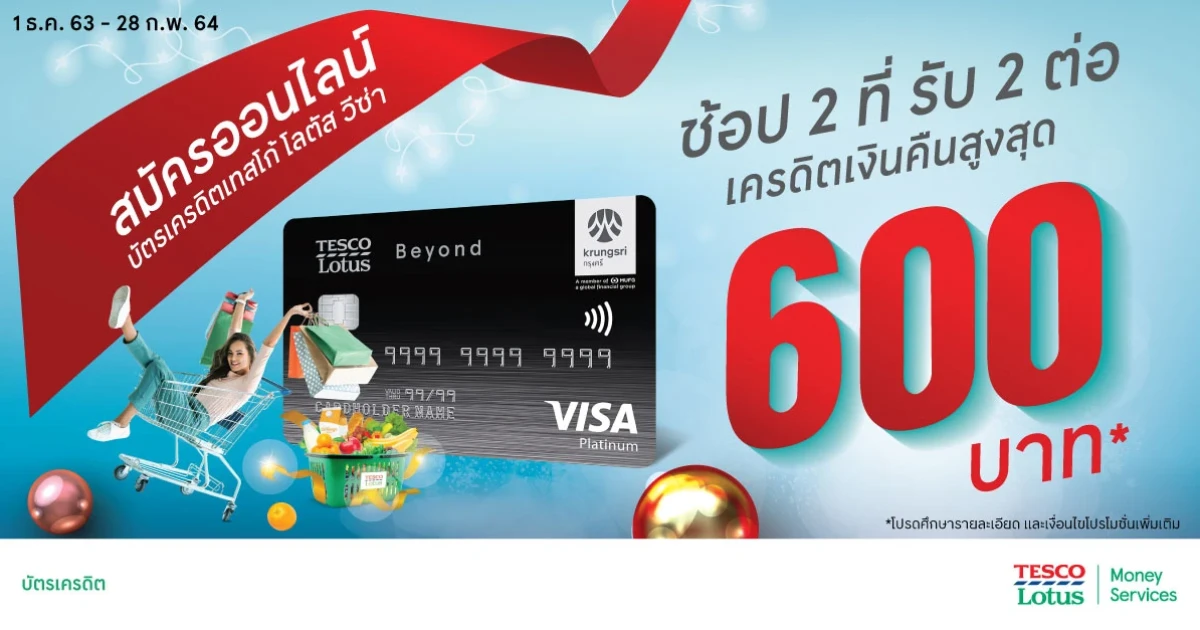 สมัครบัตรเครดิตเทสโก้ โลตัส วีซ่า ออนไลน์ วันนี้! รับเครดิตเงินคืนสูงสุด 600 บาท*