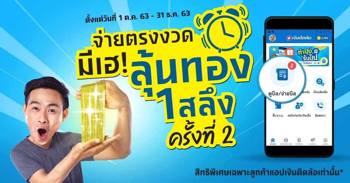 จ่ายตรงงวดมีเฮ! ลุ้นทอง 1 สลึง ครั้งที่ 2 กับแอป "เงินติดล้อ" วันนี้ - 31 ธันวาคม 2563