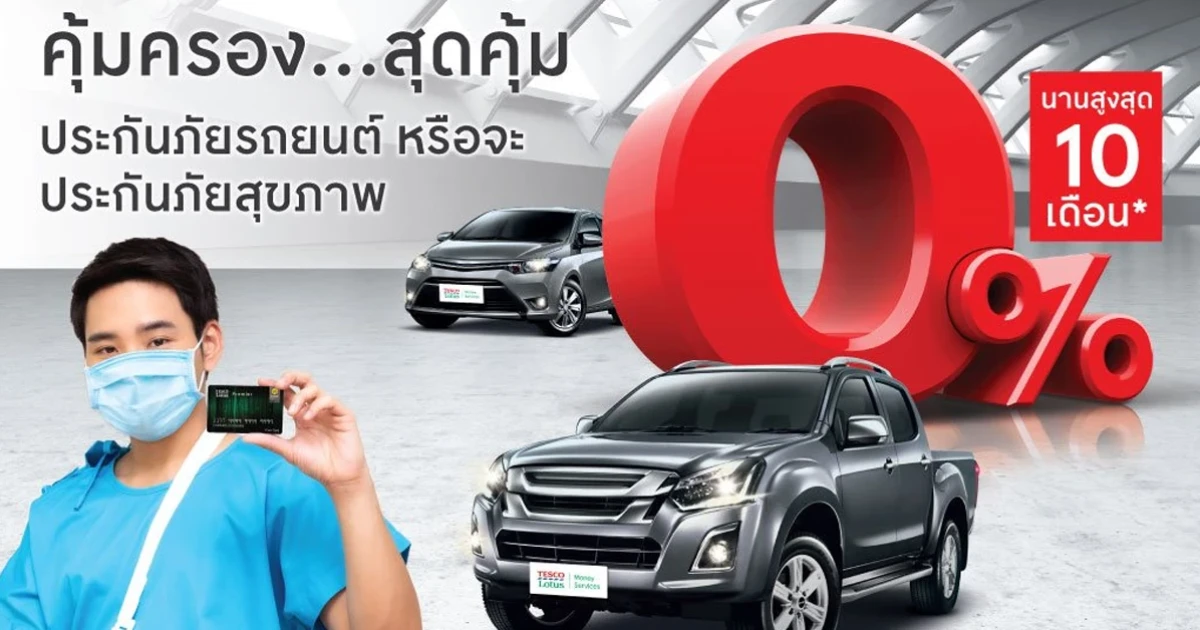 คุ้มครอง...สุดคุ้ม ประกันภัยรถยนต์ หรือจะประกันภัยสุขภาพ ผ่อน 0% นานสูงสุด 10 เดือน ผ่านบัตรสินเชื่อเทสโก้ โลตัส พรีเมียร์