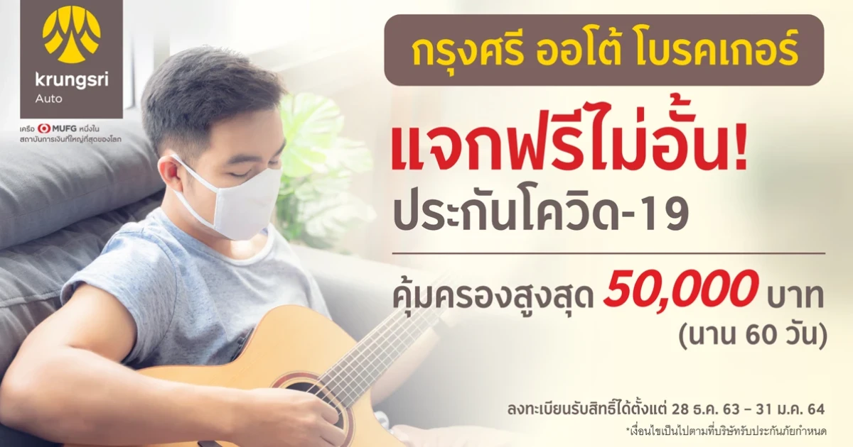 กลับมาย้ำกันอีกครั้ง!! กรุงศรี ออโต้ โบรคเกอร์ แจกฟรีไม่อั้น...ประกันโควิด-19 คุ้มครองสูงสุด 50,000 บาท