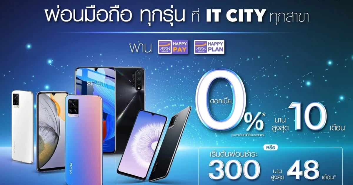 ผ่อนมือถือ ทุกรุ่นที่ร่วมรายการ ดอกเบี้ย 0% นานสูงสุด 10 เดือน ที่ร้าน IT CITY ทุกสาขา