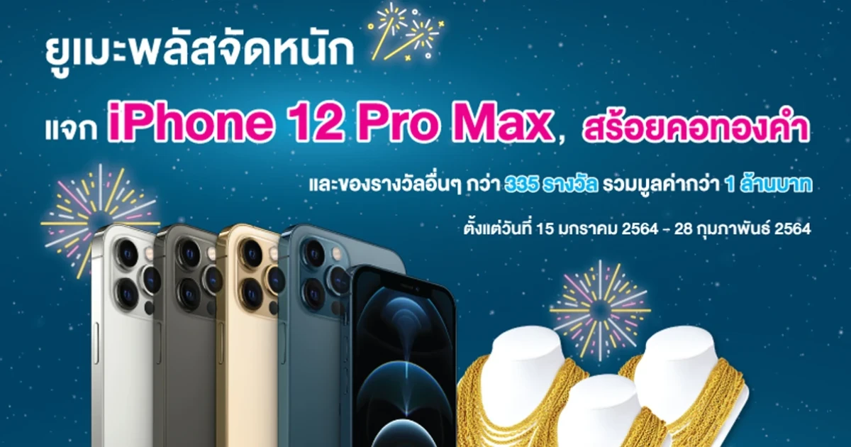 ยูเมะพลัสจัดหนัก...แจก iPhone 12 Pro Max, สร้อยคอทองคำ และของรางวัลอื่นๆ กว่า 335 รางวัล รวมมูลค่ากว่า 1 ล้านบาท ตั้งแต่วันที่ 15 มกราคม 2564 - 28 กุมภาพันธ์ 2564