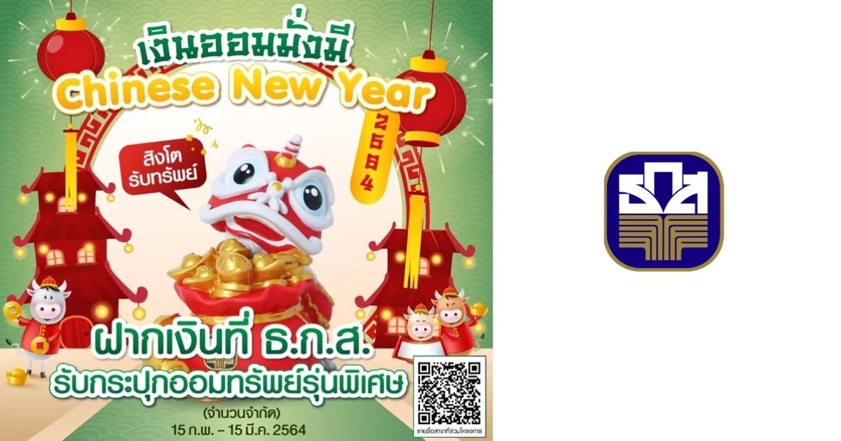 เงินออมมั่งมี จาก ธ.ก.ส. Chinese New Year 2564 รับฟรี!! กระปุกออมทรัพย์รุ่นพิเศษ "สิงโตรับทรัพย์"*