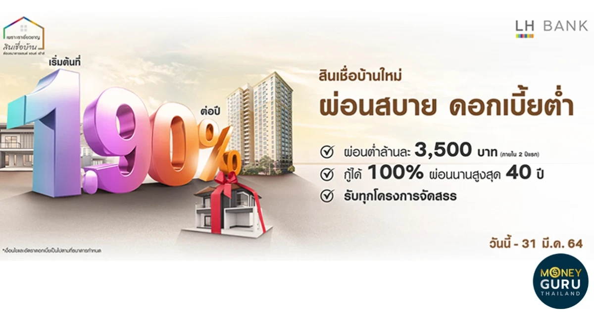โฮมโลน โดนใจ สินเชื่อบ้านดอกเบี้ยต่ำ 1.90% ผ่อนต่ำล้านละ 3,500 บาท จาก LH Bank