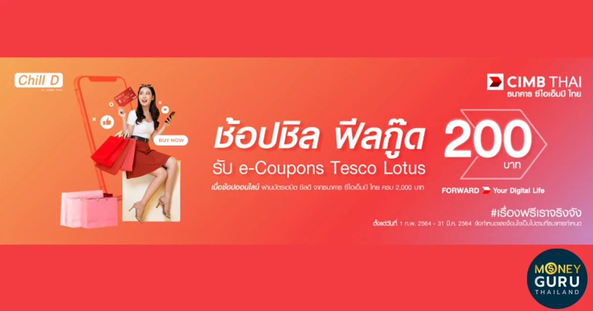 ช้อปชิล ฟีลกู๊ด รับ e-Coupon Tesco Lotus 200 บาท เมื่อช้อปออนไลน์ ผ่านบัตรเดบิต ชิลดี จาก CIMB