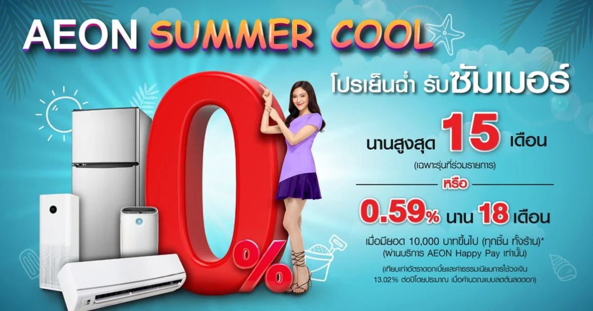 โปรเย็นฉ่ำ รับซัมเมอร์ ผ่อน 0% นานสูงสุด 15 เดือน หรือผ่อนนาน 18 เดือน ด้วยดอกเบี้ย 0.59%