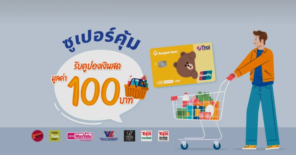 โปรฯ ซูเปอร์คุ้ม...รับคูปองเงินสดมูลค่า 100 บาท เมื่อจ่ายผ่านบัตรบีเฟิสต์ สมาร์ท ทีพีเอ็น ยูเนี่ยนเพย์ ถึง 15 ส.ค. 64