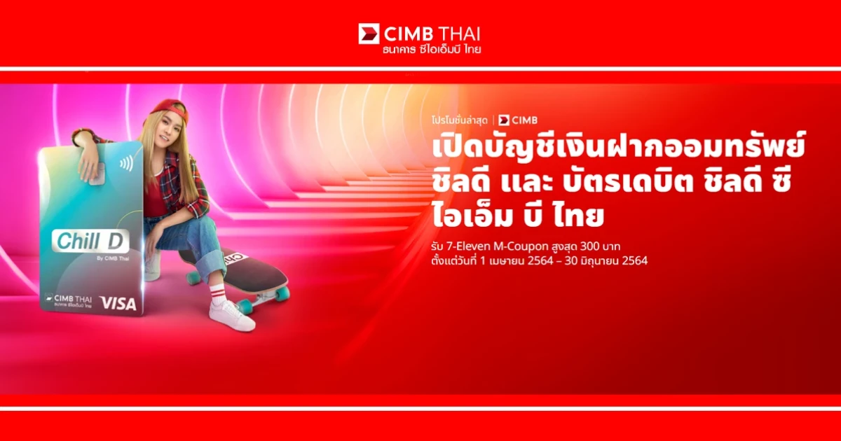 เปิดบัญชีเงินฝากออมทรัพย์ ชิลดี และบัตรเดบิต ชิลดี ซีไอเอ็ม บี ไทย รับ 7-Eleven M-Coupon สูงสุด 300 บาท