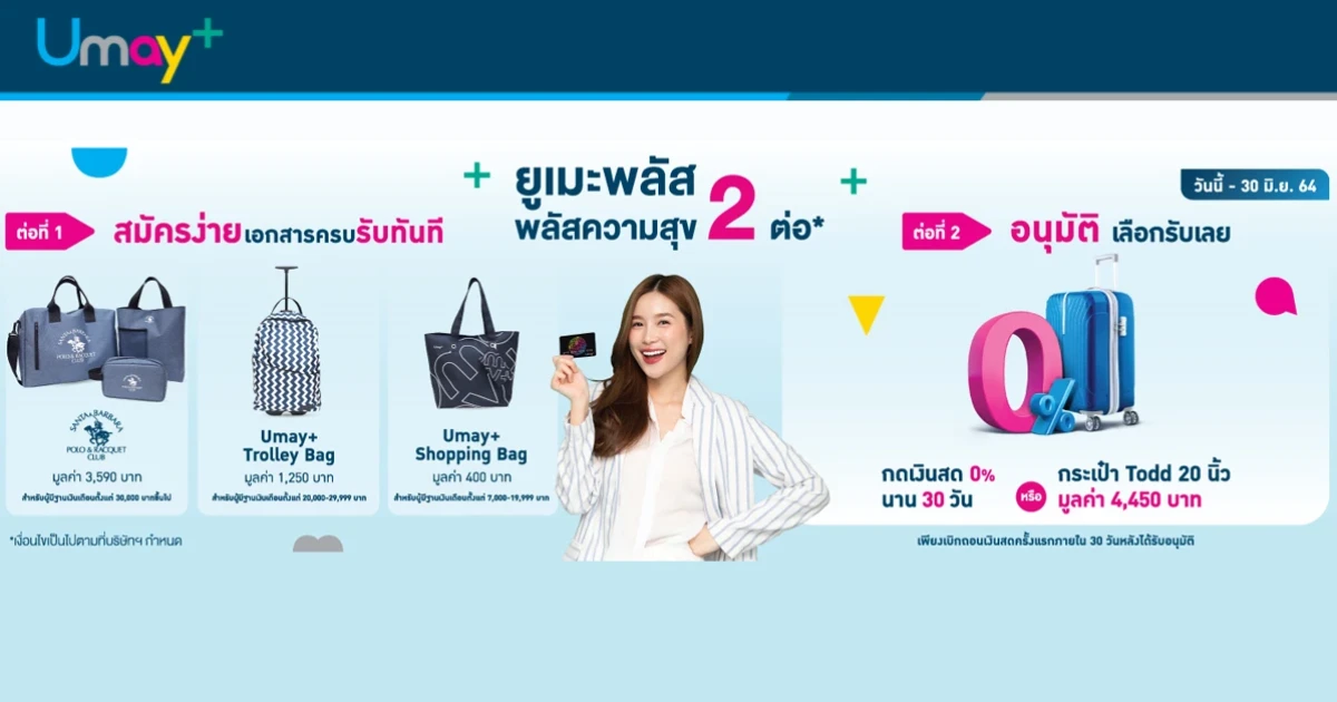 โปรโมชั่น "พลัสความสุขให้กันถึง 2 ต่อ" เฉพาะลูกค้าสมัครใหม่บัตรกดเงินสดยูเมะพลัส