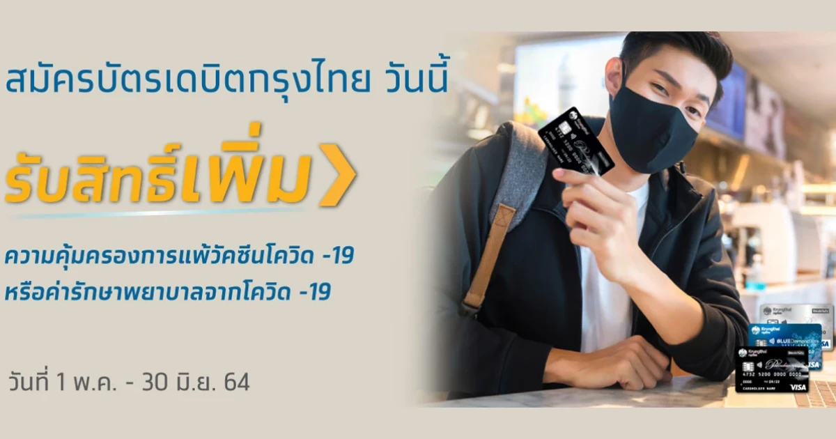 สมัครบัตรเดบิตกรุงไทย วันนี้ รับสิทธิ์เพิ่ม ความคุ้มครองการแพ้วัคซีนโควิด-19 หรือค่ารักษาพยาบาลจากโควิด-19
