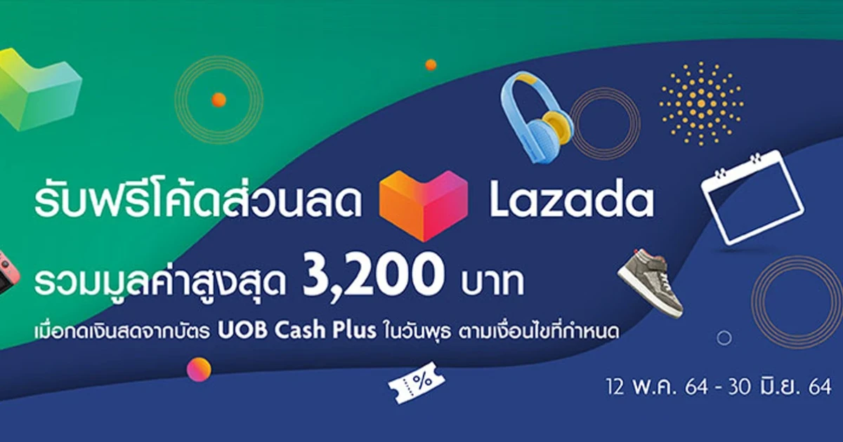 รับคูปองส่วนลด LAZADA ฟรี มูลค่ารวมสูงสุด 3,200 บาท เพียงกดเงินทุกวันพุธ ผ่านบัตรยูโอบี แคชพลัส