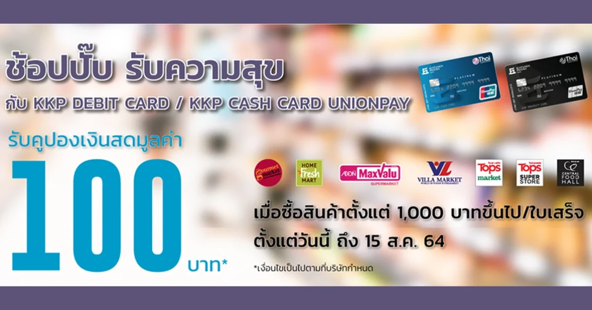 รับคูปองเงินสดมูลค่า 100 บาท เมื่อช้อปกับ KK Cash Card ตั้งแต่วันนี้ ถึง 15 ส.ค. 64