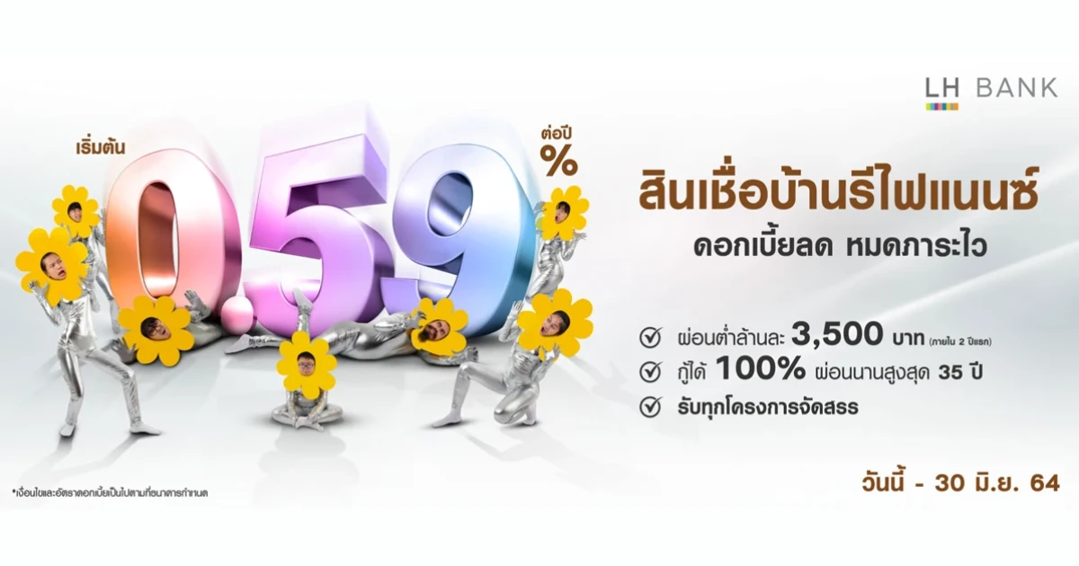 สินเชื่อบ้านรีไฟแนนซ์ ดอกเบี้ยต่ำเพียง 0.59% ต่อปี รับทุกโครงการจัดสรร ถึง 30 มิ.ย. 64