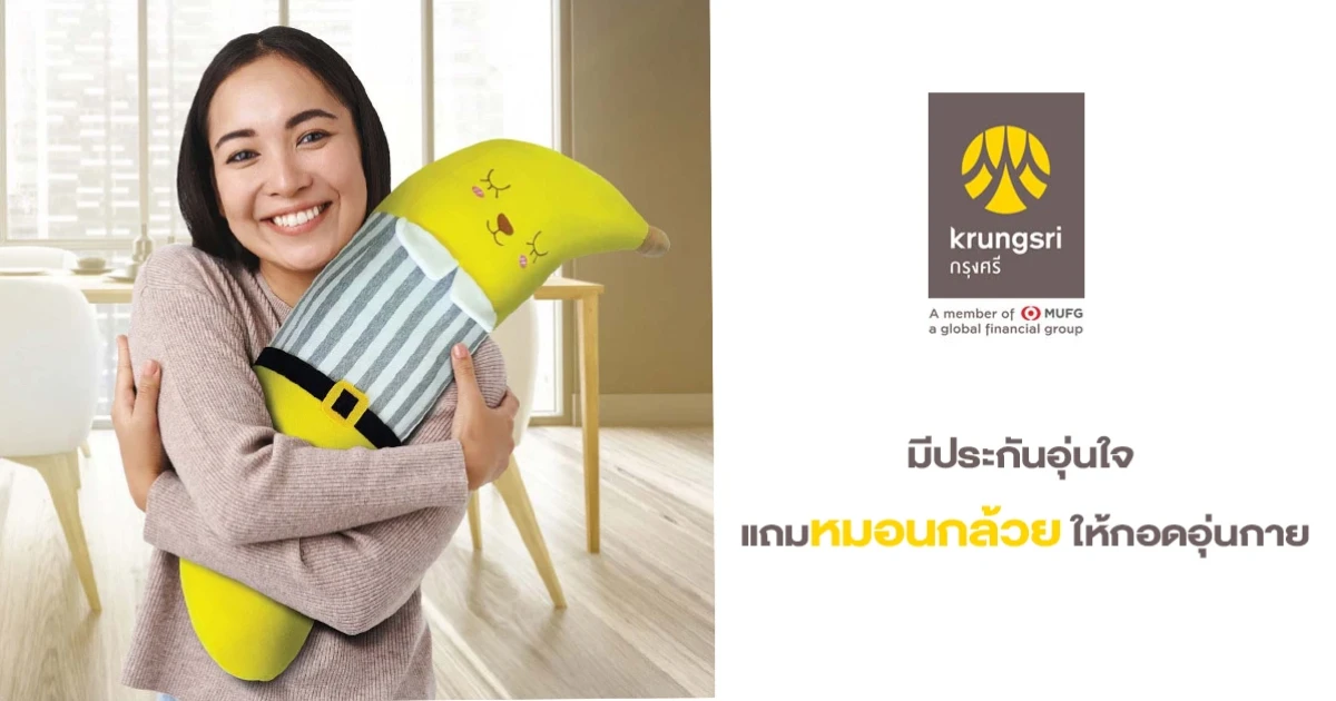 สมัครและชำระเบี้ยประกันชีวิตที่ร่วมรายการกับธนาคารกรุงศรีอยุธยา วันนี้! รับตุ๊กตาหมอนกล้วยน่ากอด 1 ตัว มูลค่า 359 บาท (จำนวนจำกัด 1,000 ตัว)
