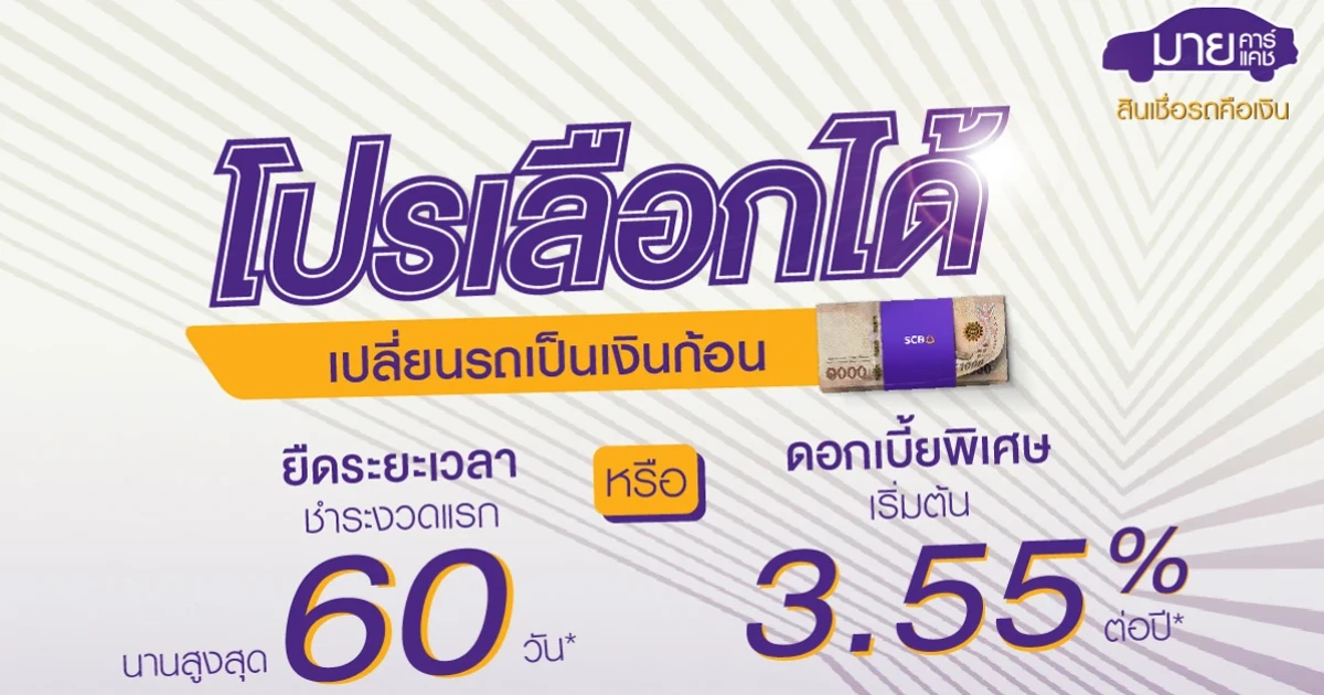 เปลี่ยนรถเป็นเงินก้อน รับข้อเสนอสุดพิเศษ โปรโมชั่นเลือกได้ จากสินเชื่อรถคือเงิน My Car My Cash ธ.ไทยพาณิชย์