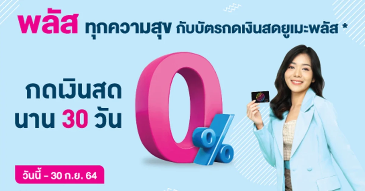 พลัสทุกความสุข กับบัตรกดเงินสดยูเมะพลัส เพียงสมัคร และอนุมัติเลือกรับเลย วันนี้ - 30 ก.ย. 64