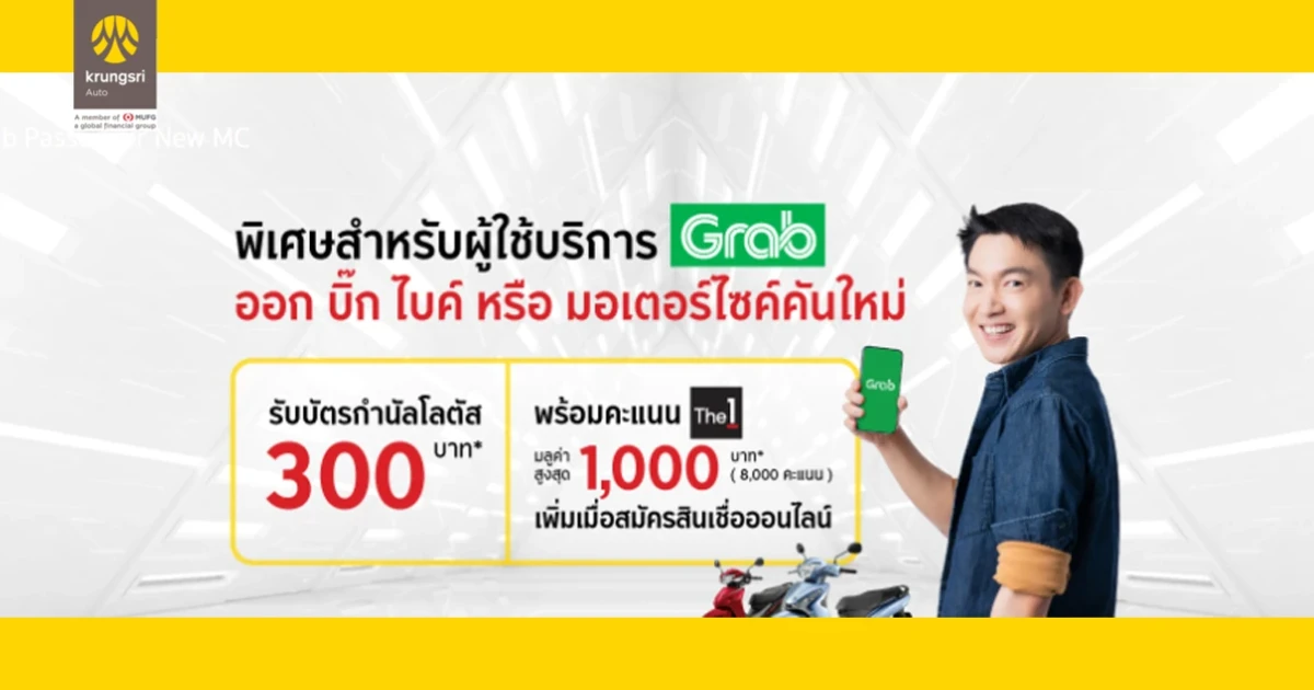 พิเศษ! สำหรับผู้ใช้บริการแกร็บ เมื่อสินเชื่อ กรุงศรี บิ๊กไบค์ หรือ กรุงศรี มอเตอร์ ไซค์