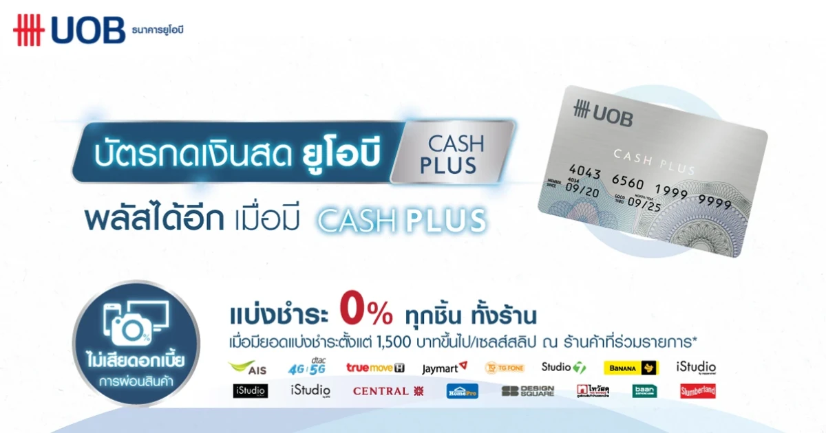 บัตรกดเงินสด ยูโอบี แคชพลัส พลัสได้อีก เมื่อมี Cash Plus สมัครวันนี้! รับสิทธิพิเศษเพิ่ม 2 ต่อ