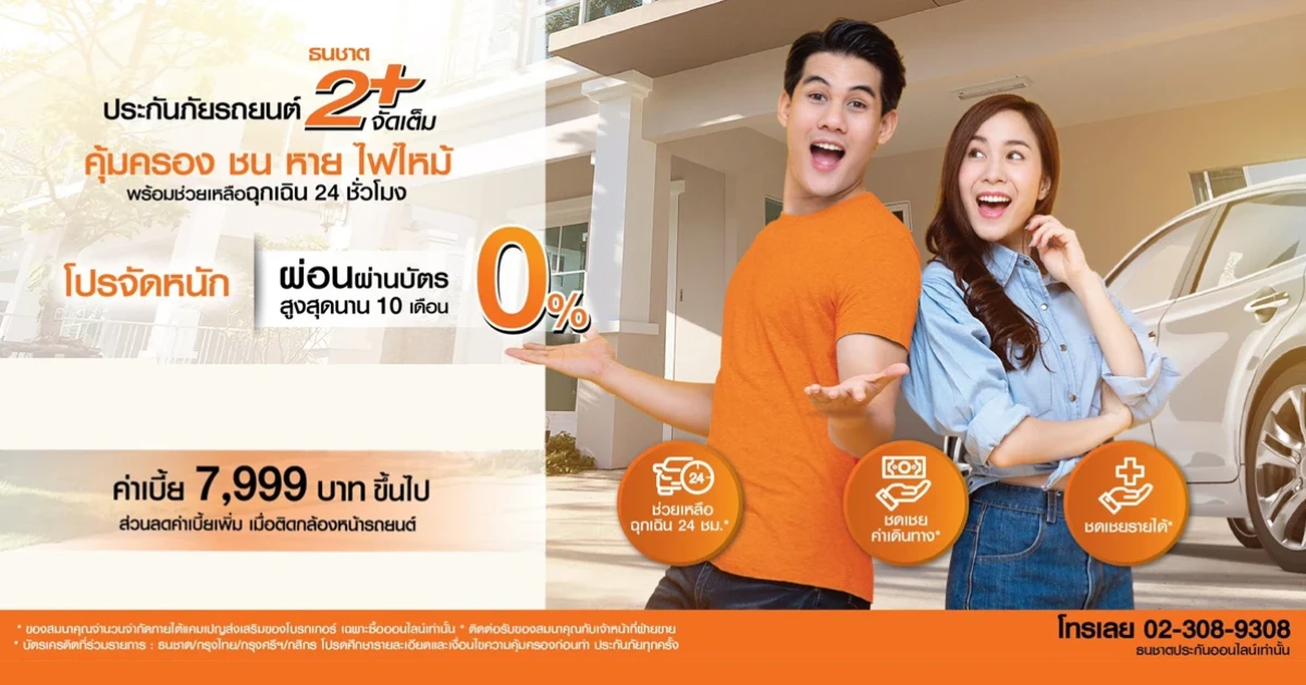 โปรจัดหนัก!! ประกันภัยรถยนต์ธนชาต 2+ จัดเต็ม ผ่อนผ่านบัตร 0% สูงสุดนาน 10 เดือน