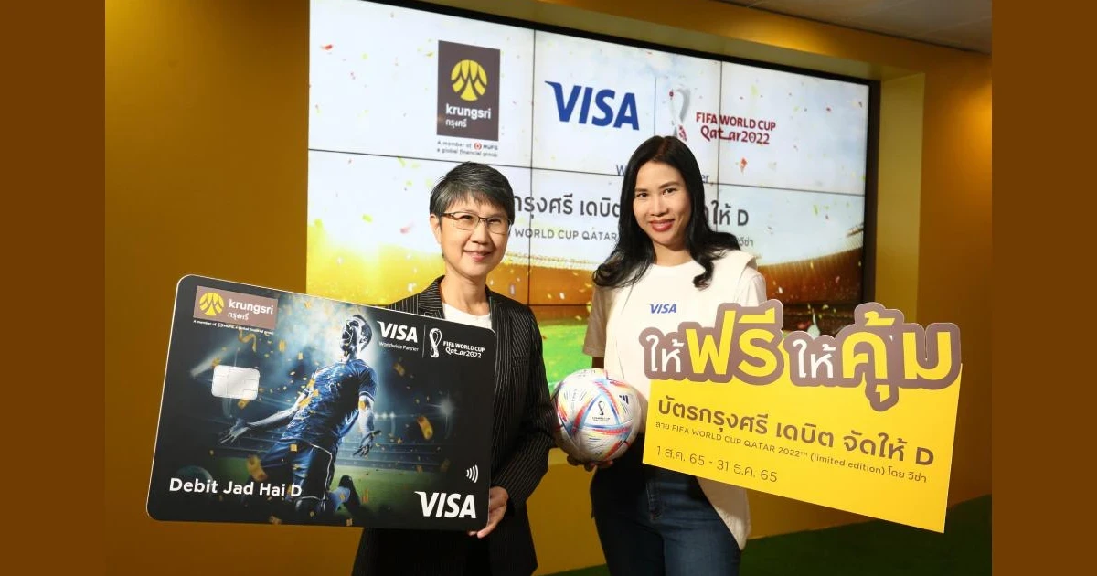 กรุงศรี (ธนาคารกรุงศรีอยุธยา จำกัด (มหาชน)) ร่วมกับ วีซ่า (บริษัท วีซ่า อินเตอร์เนชั่นแนล (ประเทศไทย) จำกัด) ผู้นำการให้บริการการชำระเงินดิจิทัลระดับโลก ออกบัตร กรุงศรี เดบิต จัดให้ D หน้าบัตรใหม่ FIFA WORLD CUP QATAR 2022 (Limited edition) หนึ่งในของสะสมที่สะท้อนความเป็นแฟนตัวจริงในมหกรรมกีฬาฟุตบอลระดับโลก ให้เหล่าบรรดาคอบอลได้เก็บสะสมเป็นที่ระลึก เพียงเปิดบัญชีกรุงศรี ออมทรัพย์ จัดให้ ออนไลน์ และสมัครบัตรเดบิตกรุงศรี เดบิต จัดให้ ผ่าน Krungsri Mobile App (KMA) วันนี้ ถึง 31 ธันวาคม 2565 พร้อมโปรโมชั่น "ให้ฟรี" แมคโดนัลด์ e-Coupon มูลค่ารวม 406 บาท และ "ให้คุ้ม" โปรโมชั่นส่วนลดมากมาย และรับสิทธิ Krungsri GIFT ได้ทุกเดือน