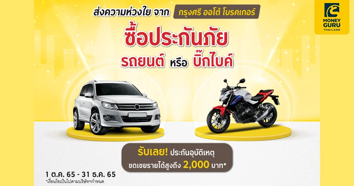 "กรุงศรี ออโต้ โบรคเกอร์" ผู้ให้บริการนายหน้าประกันภัย ภายใต้ บริษัท อยุธยา แคปปิตอล ออโต้ ลีส จำกัด (มหาชน) ในเครือกรุงศรี ออโต้ ส่งโปรโมชันพิเศษ ส่งท้ายปลายปี สำหรับลูกค้าที่ซื้อประกันภัยรถยนต์ หรือ บิ๊ก ไบค์ ผ่านทุกช่องทาง ตามเงื่อนไขที่กำหนด รับฟรีประกันอุบัติเหตุชดเชยรายได้สูงสุด 2,000 บาท พร้อมคุ้มครองกรณีเสียชีวิตจากอุบัติเหตุ 100,000 บาท ตั้งแต่วันที่ 1 ตุลาคม 2565 – 31 ธันวาคม 2565