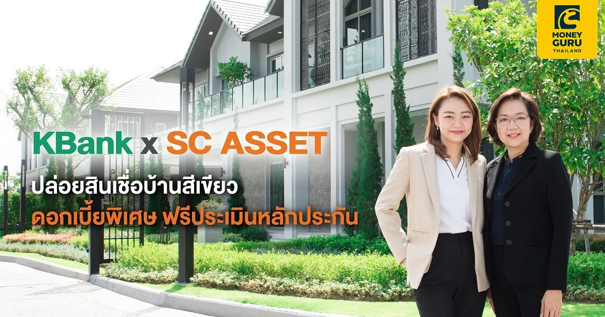 ธนาคารกสิกรไทย และเอสซี แอสเสท ผนึกกำลังสนับสนุนคนไทย GO GREEN แบบครบวงจร ปล่อยสินเชื่อบ้านสีเขียว อัตราดอกเบี้ยพิเศษเริ่มต้น 2.5% ต่อปี ใน 3 ปีแรก วงเงินกู้สูงสุด 100% ผ่อนชำระนานสูงสุด 30 ปี ฟรีค่าประเมินหลักประกัน ให้แก่ลูกค้าที่ซื้อบ้านประหยัดพลังงานใน 53 โครงการของเอสซี แอสเสท เพื่อส่งเสริมให้คนไทยเข้าถึงการใช้พลังงานสะอาด ลดการปล่อยก๊าซเรือนกระจก ส่งต่อโลกที่น่าอยู่ให้แก่คนรุ่นหลัง