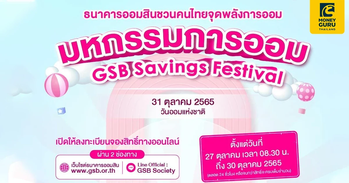 - ช่องทางการลงทะเบียนจองสิทธิ ผ่าน เว็บไซต์ www.gsb.or.th หรือ ผ่าน Line Official : GSB Society