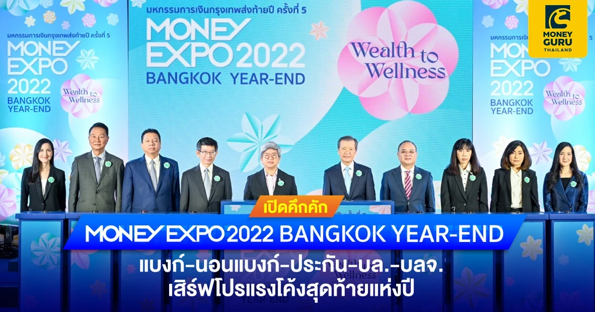 งานมหกรรมการเงินกรุงเทพส่งท้ายปี ครั้งที่ 5 MONEY EXPO 2022 BANGKOK YEAR-END แบงก์-นอนแบงก์-ประกัน-บล.-บลจ. อัดแคมเปญสุดพิเศษโค้งสุดท้ายแห่งปี เงินฝากเผื่อเรียกพิเศษ 109 อัตราดอกเบี้ยแบบ Step up สูงสุด 10.90% ต่อปี สินเชื่อบ้าน 0% ต่อปี นาน 3 เดือน ทรัพย์ NPA ลดสูงสุด 55% สินเชื่อธุรกิจ SSME 1.99% ต่อปี กองทุน-ประกันลดหย่อนภาษี เช็กฟรี! เครดิตบูโรในงาน พร้อมฟังสัมมนา ฟรี! ตลอดงาน วันที่ 15-18 ธันวาคม 2565 ที่ ฮอลล์ EH103-104 ศูนย์นิทรรศการและการประชุมไบเทค บางนา