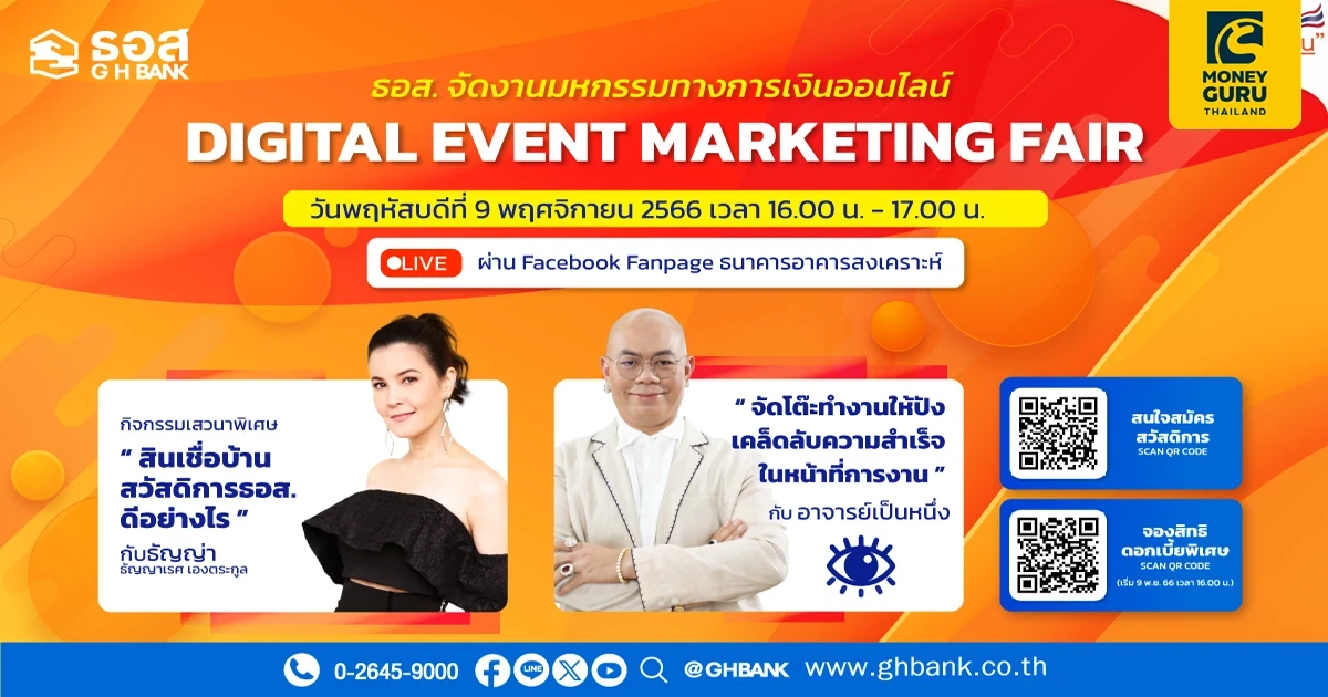 พลาดไม่ได้!!! กับงาน Digital Event Marketing Fair และโครงการสวัสดิการเงินกู้เพื่อที่อยู่อาศัย กับธนาคารอาคารสงเคราะห์ ที่จะทำให้คนไทยมีบ้านได้ง่ายขึ้น