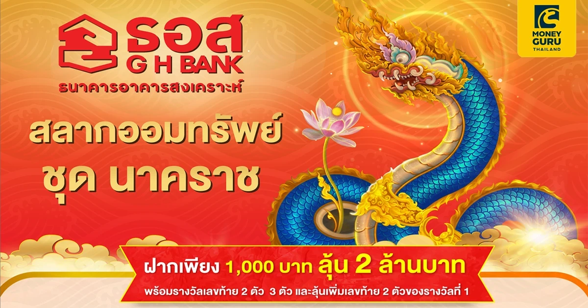 ธนาคารอาคารสงเคราะห์ เปิดตัว สลากออมทรัพย์ ชุด "นาคราช" หน่วยละ 1,000 บาท อายุสลาก 3 ปี ผลตอบแทนหน้าสลากสูงถึง 1.00% ต่อปี ลุ้นรับเงินรางวัลมูลค่า 2 ล้านบาท ตลอด 36 งวด เริ่มรับฝากตั้งแต่วันที่ 17 เมษายน 2567 และออกรางวัลครั้งแรก วันที่ 16 พฤษภาคม 2567 จำหน่ายผ่านช่องทาง Mobile Application : GHB ALL GEN และ ธอส. ทุกสาขาทั่วประเทศ