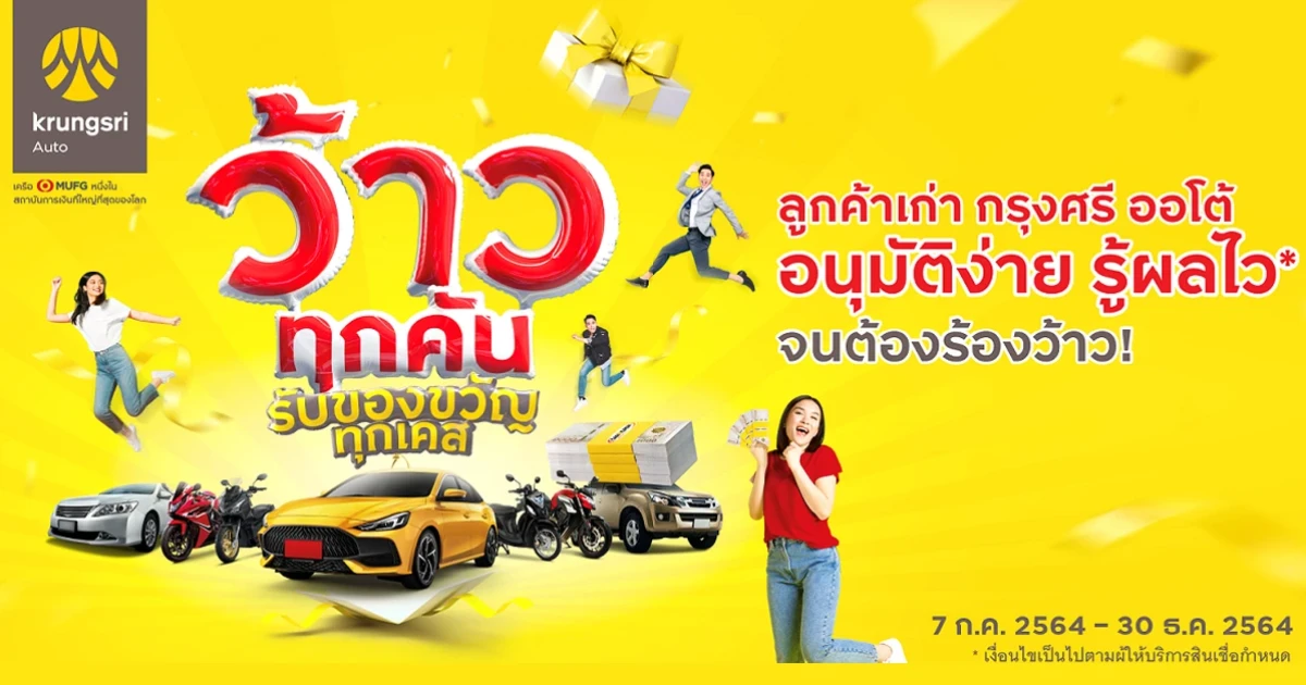 แคมเปญ "กรุงศรี ออโต้ ว้าว" มอบความพิเศษจัดเต็มภายใต้คอนเซ็ปต์ "ว้าวทุกคัน รับของขวัญทุกเคส" นำเสนอเงื่อนไขพิเศษ เช่น ดาวน์ต่ำ ผ่อนนาน อัตราดอกเบี้ยต่ำพิเศษ และวงเงินสูง พร้อมบริการอนุมัติง่าย และรู้ผลรวดเร็ว และของกำนัล พิเศษ รับคะแนน The 1 สูงสุด 20,000 คะแนน (มูลค่า 2,500 บาท) เมื่อได้รับอนุมัติสินเชื่อ โดยลูกค้าเก่าสามารถรับสิทธิประโยชน์ได้ตั้งแต่วันที่ 7 กรกฎาคม 2564 จนถึง 30 ธันวาคม 2564 นี้ ตรวจสอบรายละเอียดเพิ่มเติมได้ที่ https:// kautolink.com/b0m830