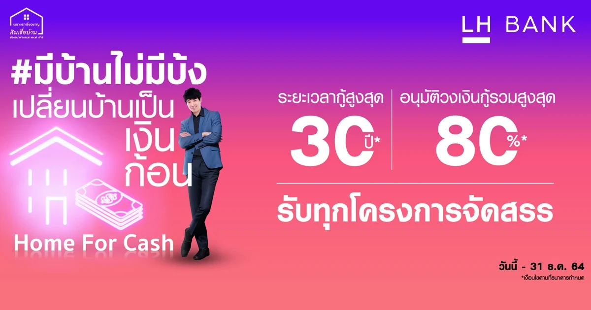 เพิ่มอิสระในการใช้จ่ายทางการเงิน เพื่อสานฝันให้ทุกความต้องการของคุณเป็นจริงได้ด้วย สินเชื่อบ้านเพิ่มเงิน….HAPPY HOME FOR CASH จาก LH Bank คุณเลือกได้ โอกาสดีๆ อยู่ในมือคุณ...