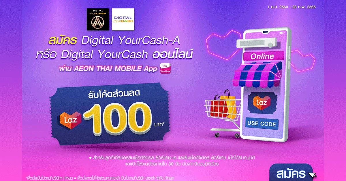 พิเศษ! สำหรับผู้สมัครสินเชื่อดิจิตอล ยัวร์แคช-เอ และ สินเชื่อดิจิตอล ยัวร์แคช ออนไลน์ ผ่าน AEON THAI MOBILE App