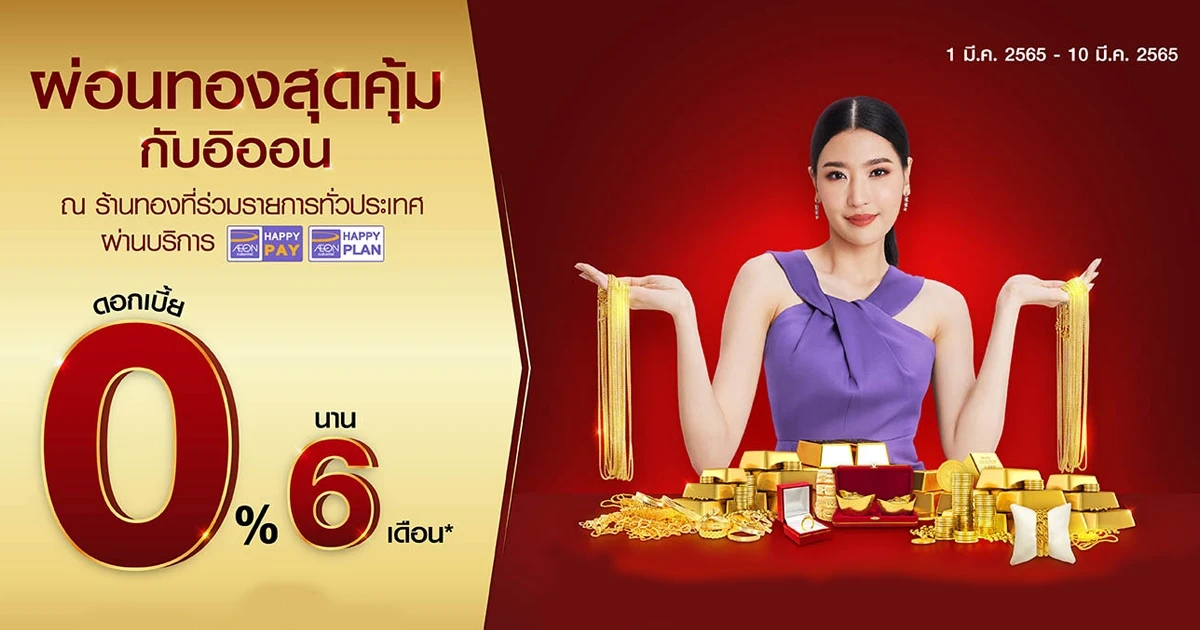 - เมื่อผ่อนชำระทองคำ โดยมียอดสินเชื่อตั้งแต่ 3,000 บาทขึ้นไป/เซลล์สลิป รับอัตราดอกเบี้ย 0% นาน 6 เดือน สำหรับบริการ “อิออน แฮปปี้ เพย์ และอิออน แฮปปี้ แพลน” หรือ เมื่อมียอดสินเชื่อตั้งแต่ 4,500 บาทขึ้นไป/เซลล์สลิป รับอัตราดอกเบี้ย 0.22% ต่อเดือน นาน 15 เดือน (เทียบเท่าอัตราดอกเบี้ยและค่าธรรมเนียมการใช้วงเงิน 4.9 % ต่อปี โดยประมาณ เมื่อคำนวณแบบลดต้นลดดอก) เฉพาะบริการ อิออน แฮปปี้ เพย์