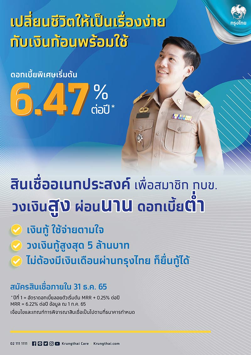 สินเชื่ออเนกประสงค์ เพื่อสมาชิก กบข. : วงเงินสูง ผ่อนนาน ดอกเบี้ยต่ำ