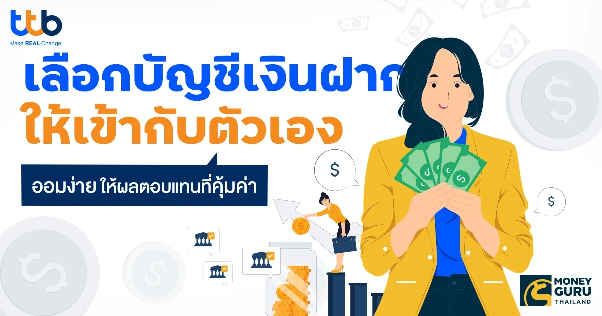 เลือกบัญชีเงินฝากที่ให้สิทธิประโยชน์เหมาะกับความต้องการและไลฟ์สไตล์ของตัวเอง บริหารสภาพคล่องทางการเงินให้ง่ายขึ้น ด้วยการออมเงินให้เป็นนิสัย ไปพร้อมๆ กับการมีวิสัยทัศน์ในการลงทุน โดยมี ttb เป็นอีกหนึ่งแรงผลักดัน ที่จะทำให้ชีวิตของคุณดียิ่งขึ้น