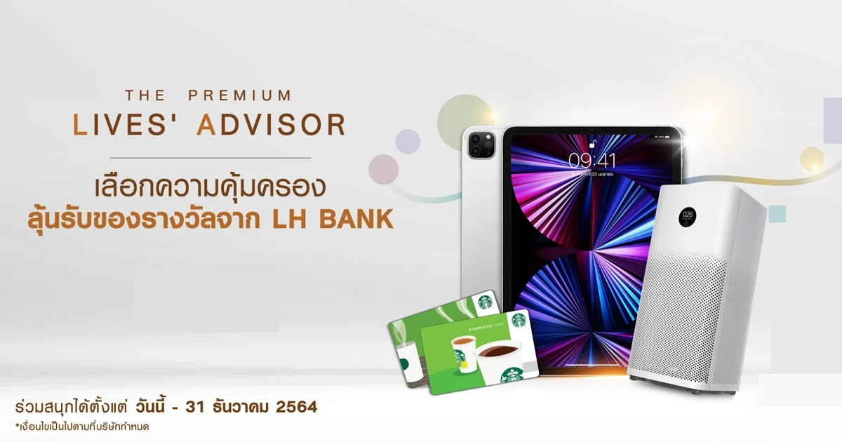 ลุ้นรับของรางวัลพรีเมียม จำนวนรวมทั้งสิ้น 10 รางวัล รวมมูลค่า 48,870 บาท เมื่อซื้อประกันภัยภายใต้แคมเปญ LH Bank The Premium Live’s Advisor