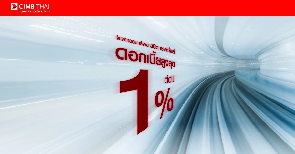 บัญชีเงินฝากออมทรัพย์สปีด เซฟวิ่งส์ ออมได้ใช้คล่อง ด้วยบัญชีออมทรัพย์เปิดง่ายไวทันใจ ฝาก-ถอนหรือโอนเมื่อไรก็สะดวก พร้อมรับอัตราดอกเบี้ยสูงสุด 1.00% ต่อปี* จำนวนเงินเปิดบัญชีขั้นต่ำ 100,000 บาท เปิดบัญชีได้คนละ 1 บัญชีเท่านั้น