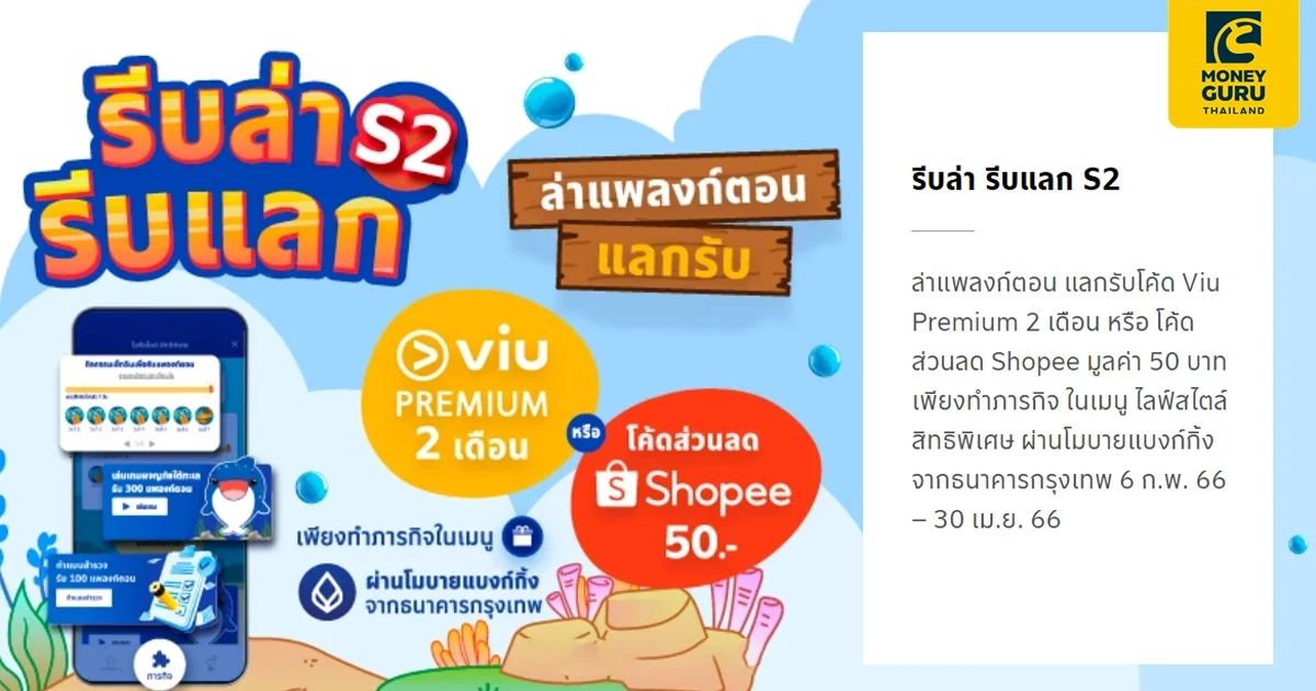 ล่าแพลงก์ตอน แลกรับโค้ด Viu Premium 2 เดือน หรือ โค้ดส่วนลด Shopee มูลค่า 50 บาท เพียงทำภารกิจ ในเมนู ไลฟ์สไตล์ สิทธิพิเศษ ผ่านโมบายแบงก์กิ้ง จากธนาคารกรุงเทพ