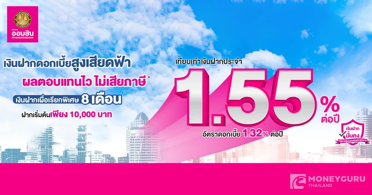 เงินฝากดอกเบี้ยสูงเสียดฟ้า ผลตอบแทนไว ไม่เสียภาษี กับบัญชีเงินฝากเผื่อเรียกพิเศษ 8 เดือน ฝากเริ่มต้นเพียง 10,000 บาท