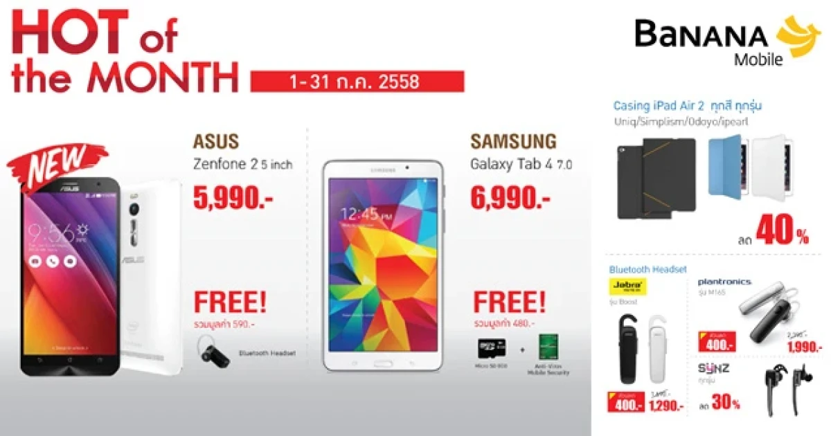 ห้ามพลาด !!! กับโปรโมชั่นสุดฮอต เป็นเจ้าของสินค้าไอทีในราคาพิเศษกว่าใคร และของสมนาคุณอีกมากมาย ที่ร้านบานาน่าไอที และบานาน่าโมบาย ทุกสาขา ทั่วประเทศ ตั้งแต่วันที่ 1 - 31 ก.ค. 58